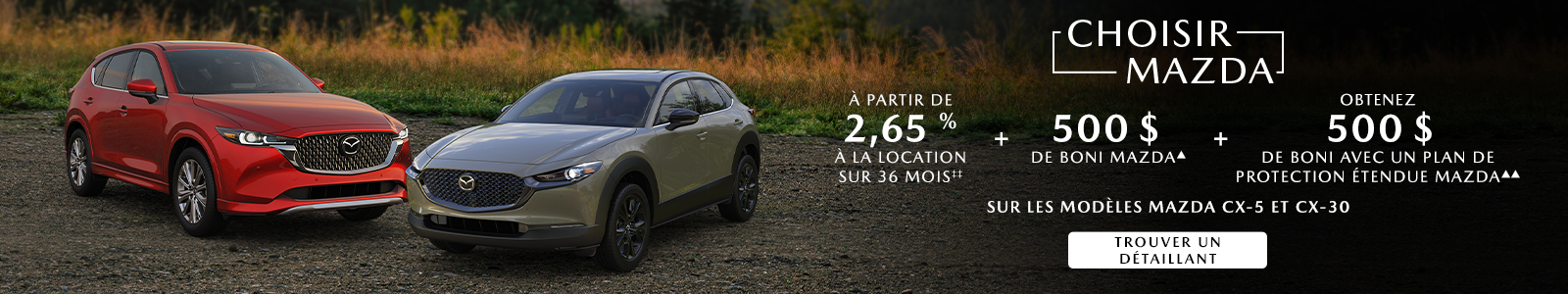DÉTAILLANTS, qui sont pertinents à mes intérêts en fonction des renseignements que Mazda possède à mon sujet. Le consentement est sollicité par Mazda en son propre nom et au nom de ses détaillants. Je pourrai me désabonner à tout moment. Je consens également à ce que Mazda utilise mes renseignements conformément à sa