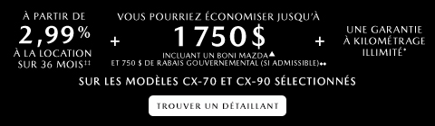Je consens à recevoir des courriels et autres communications électroniques contenant de l’information, des promotions et des offres pour les produits et services de Mazda Canada inc. (